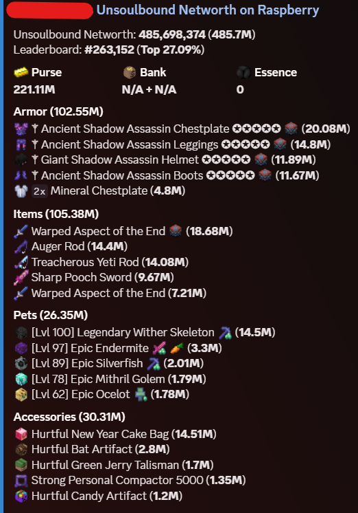 • Mythic Ancient Shadow Assassin w/ 5 Wither Stars, Many Enchants