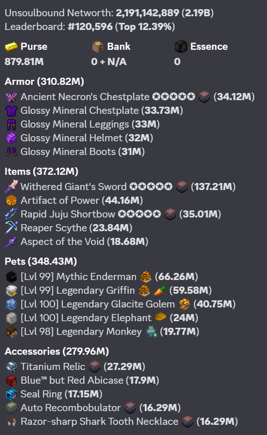 Hypixel skyblock ISLAND/PROFILE ( Networth : 3.38B ( 2.19B UNSOULBOUND / 99% risk free!)