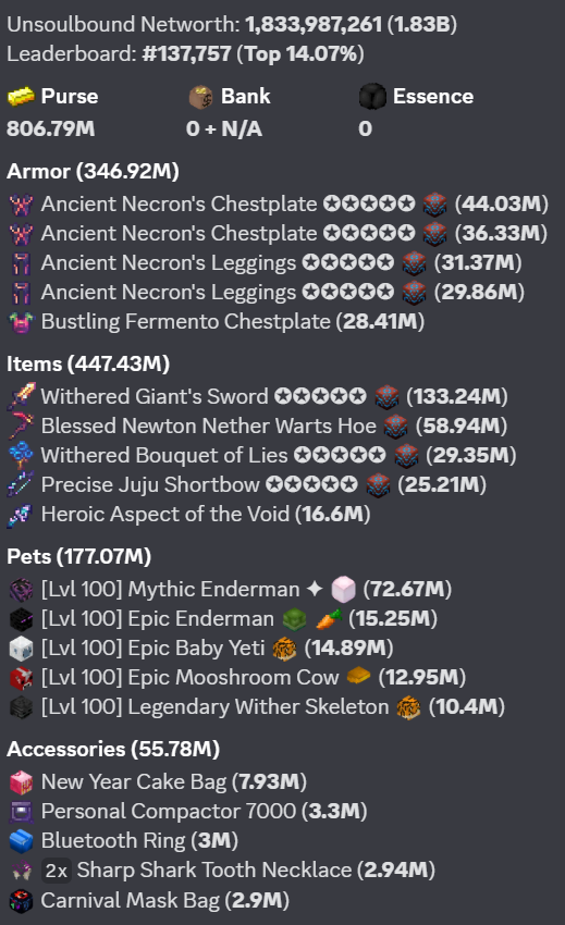 Hypixel skyblock ISLAND/PROFILE ( Networth : 1.83B ( All UNSOULBOUND / 99% risk free!)