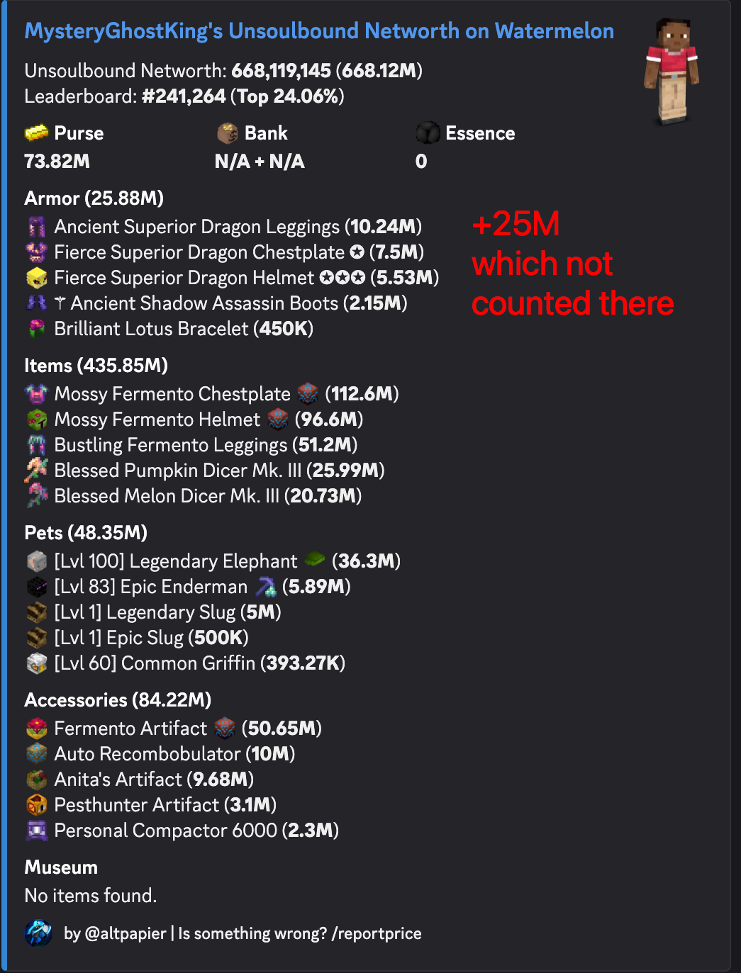 - You can see the profile on the screenshot or there -> https://sky.shiiyu.moe/stats/MysteryGhostKing/Watermelon