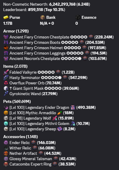 All unsoulbound, accessories worth 1k mp. Best for grinding cata, combat, slayers, anything. Can also give account, cata 36, combat 46... Dm for ign