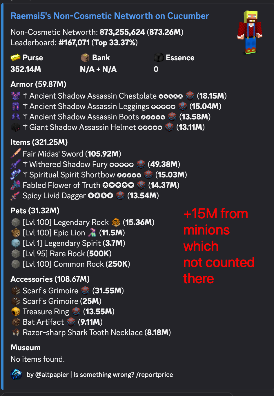 - You can see the profile on the screenshot or there -> https://sky.shiiyu.moe/stats/Raemsi5/Cucumber