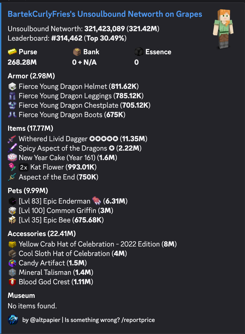- You can see the profile on the screenshot or there -> https://sky.shiiyu.moe/stats/BartekCurlyFries/Grapes
