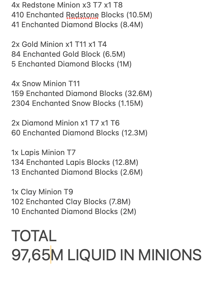 - Coins: 365M* ready to spend (97,6M IN MINIONS, which not counted in NW)