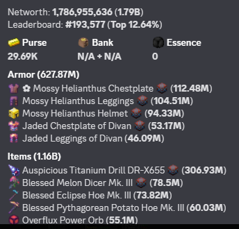 Includes items like 655 drill, 4/4 helianthus, jaded divan, overflux, hoes and much more!
