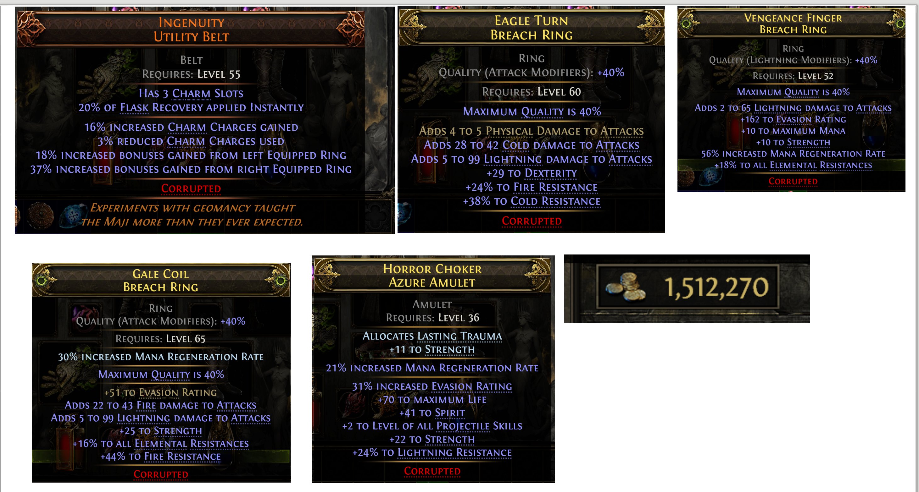 Price of all gear items 100+ divine orbs