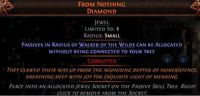 FROM NOTHING DIAMOND UNIQUE JEWEL WALKER OF THE WILDS PASSIVE SKILL OR VAAL PACT