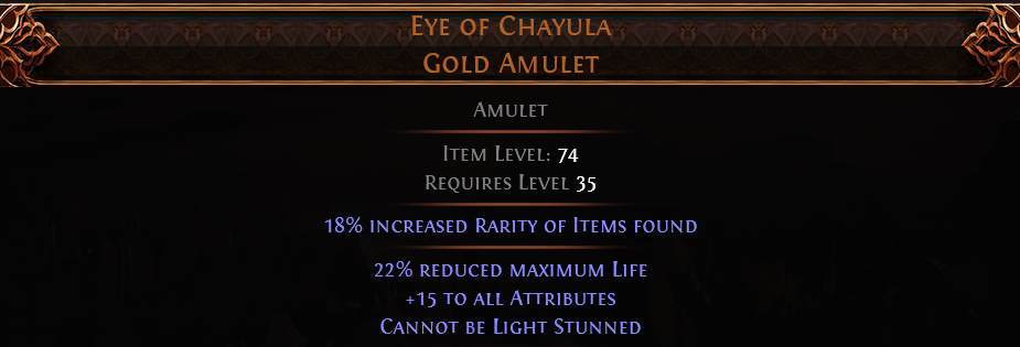 RISE OF THE ABYSSAL Eye of Chayula UNIQUE AMULET LVL 35 REQ CANNOT BE LIGHT STUNNED