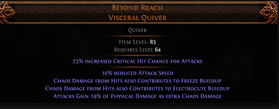 RISE OF THE ABYSSAL Beyond Reach UNIQUE QUIVER LVL 64 REQ RANGER QUIVER HUNTRESS QUIVER