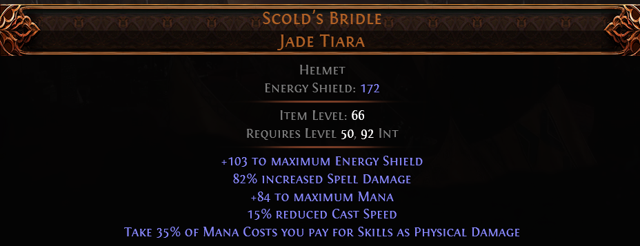 RISE OF THE ABYSSAL Scold's Bridle Jade Tiara UNIQUE HELMET LVL 50 REQ