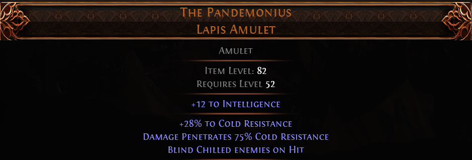 RISE OF THE ABYSSAL The Pandemonius UNIQUE AMULET LVL 52 REQ DAMAGE PENETRATES 75% COLD RESISTANCE