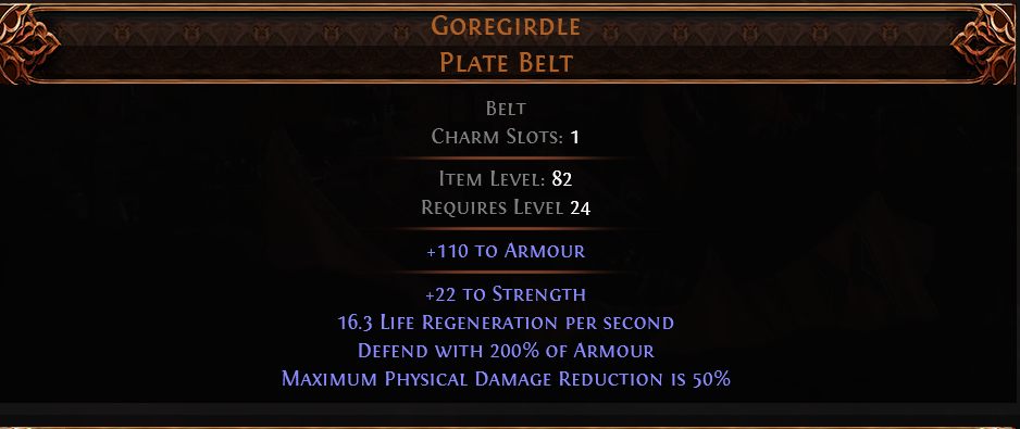 RISE OF THE ABYSSAL Goregirdle UNIQUE BELT LVL 24 REQUIRED WARRIOR BELT