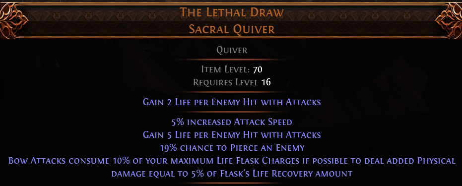 RISE OF THE ABYS The Lethal Draw UNIQUE QUIVER NO LVL REQ RANGER QUIVER AMAZON QUIVER HUNTRESS QUIVE