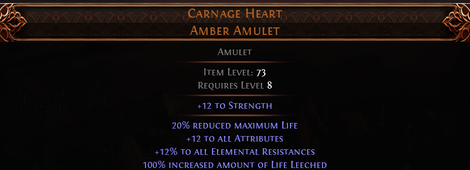 RISE OF THE ABYSSAL Carnage Heart UNIQUE AMULET LVL 8 REQ ALL STAT + ALL RESISTANCE AMULET