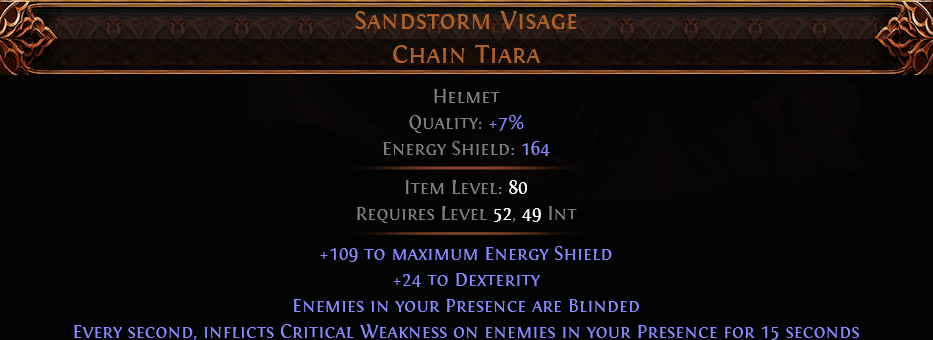 RISE OF THE ABYSS Sandstorm Visage Chain Tiara UNIQUE HELMET LVL 52 REQ Enemies in your Presence are