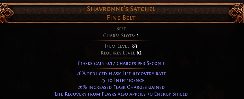 RISE OF THE ABYSSAL Shavronne's Satchel Fine Belt UNIQUE BELT LVL 62 REQUIRED