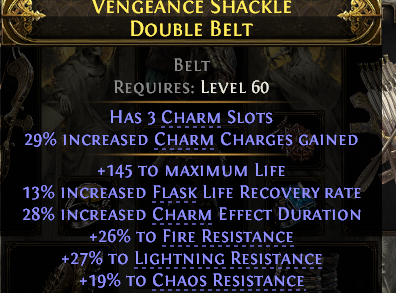 RISE OF THE ABYSSAL INSANE BELT 3 CHARM SLOT 145 LIFE 26% FIRE RES 27% LIGHTNING RES 19% CHAOS RESIS