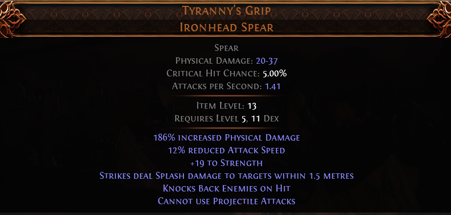 RISE OF THE ABYSSAL Tyranny's Grip UNIQUE SPEAR LVL 5 REQUIRED HUNTRESS SPEAR AMAZON SPEAR