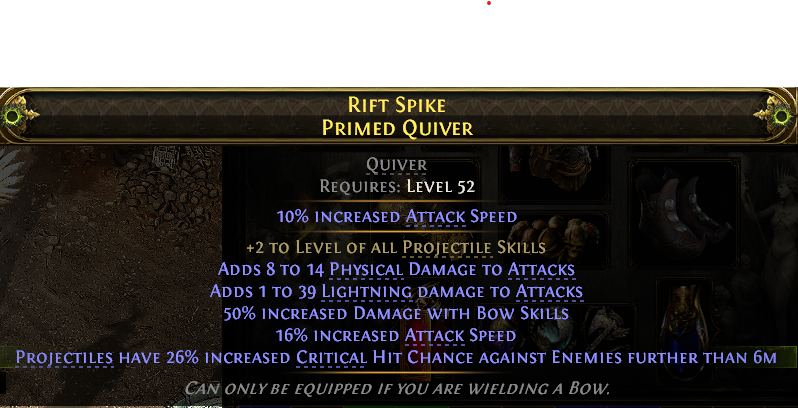 PRIMED QUIVER +2 PROJ SKILLS 50% BOW SKILLS DMG PHYSICAL+LIGHT DMG 26% ATTACK SPEED 26% CRIT CHANCE