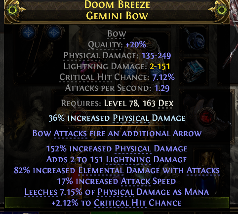 500 DPS GEMINI BOW 151 LIGHTNING DMG 82% ELEMENTAL DMG 17% A.SPEED 2% CRIT CHANCE
