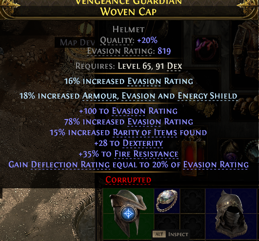 819 EVASION HELM 20% DEFLECTION 15% RARITY 28 DEX 35% FIRE RES RANGER MONK HUNTRESS