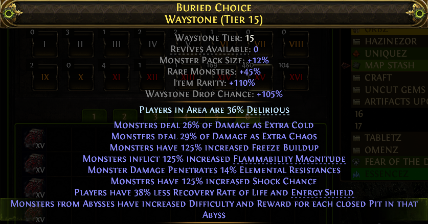 TIER 15 WAYSTONES 100% RARITY + 45% RARE MONSTER ABYSS MODED RANK 15 MAPS FULL UPGRADED T15 MAPS