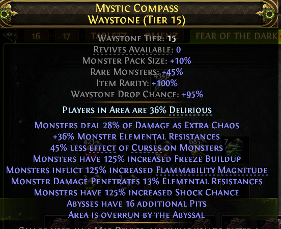TIER 15 MAP WITH OVERRUN BY ABYSS MODE (TURNS UR MAP ABYSS 15+ EXTRA PITS 100% RARITY 45% RARE MOBS