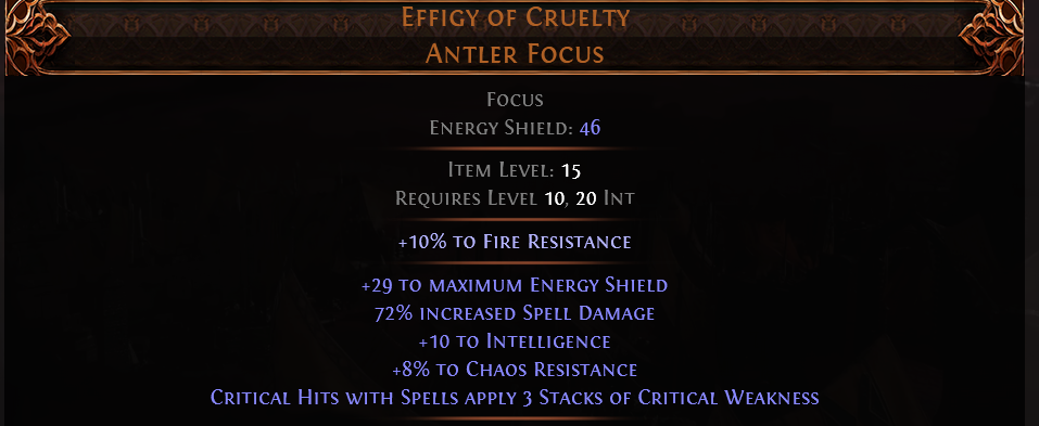 RISE OF THE ABYSSAL Effigy of Cruelty UNIQUE FOCUS LVL 10 REQ SORCERESS FOCUS WITCH FOCUS