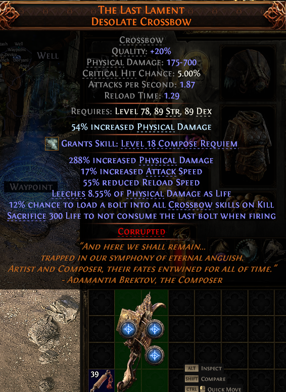 3 SOCKETED THE LAST LAMENT UNIQUE CROSSBOW 700 MAX DMG Last Lament Crossbow Lich