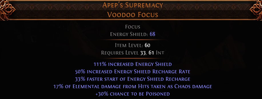 RISE OF THE ABYSSAL Apep's Supremacy UNIQUE FOCUS LVL 33 REQ SORCERESS FOCUS WITCH FOCUS