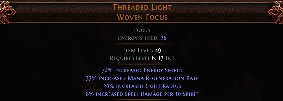 RISE OF THE ABYSSAL Threaded Light Woven Focus UNIQUE FOCUS LVL 6 REQ WITCH FOCUS SORCERESS FOCUS