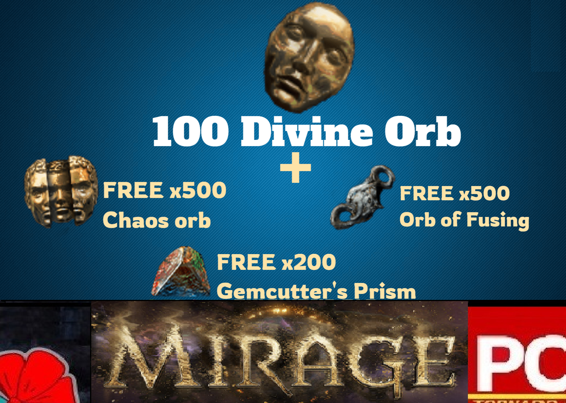 {NICE PACK}: 100 Div + Free(500 Chaos + 500 fusing + 200 Gemcutter's)/ POE 1 Mirage Softcore/ Instant