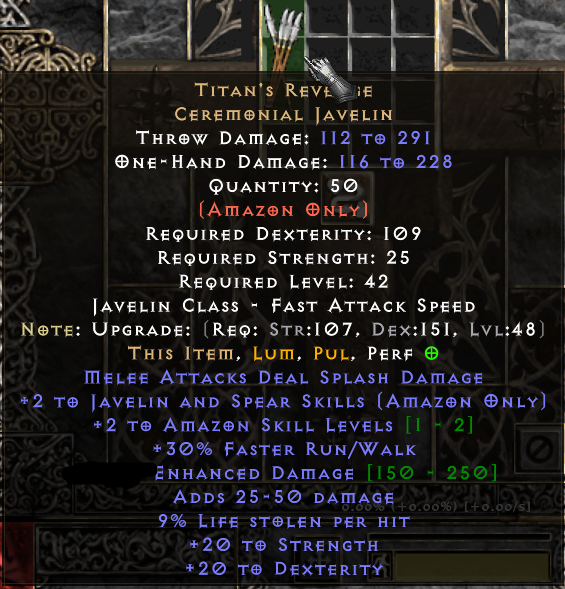 Titan's Revenge Javelin +2Skills - PD2 Season 12 Softcore Ladder