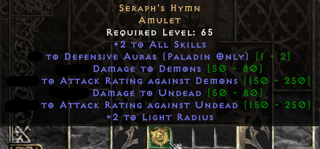Seraph's Hymn Amulet - PD2 Season 12 Softcore Ladder