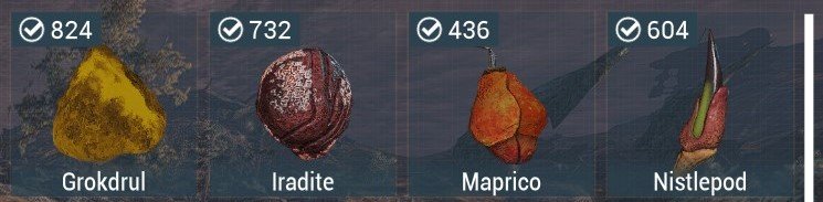 The available resources and their approximate amounts are shown in the lot screenshots.