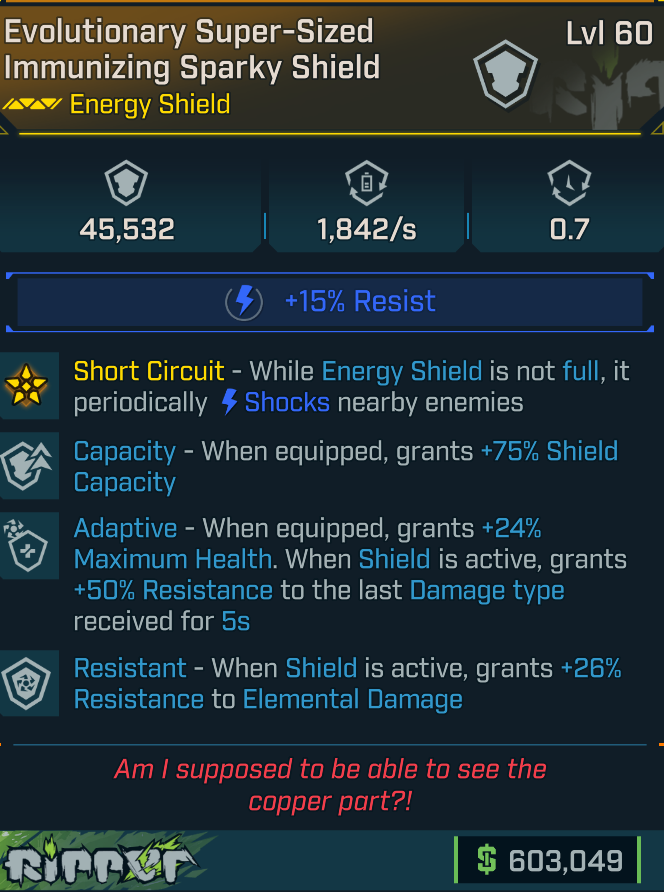 Sparky Shield [Capacity, Adaptive, Resistant] (Ripper shield)