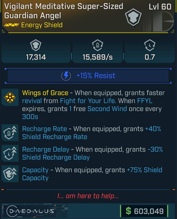 Guardian Angel [Recharge rate, Recharge delay, Capacity] (Daedalus shield)