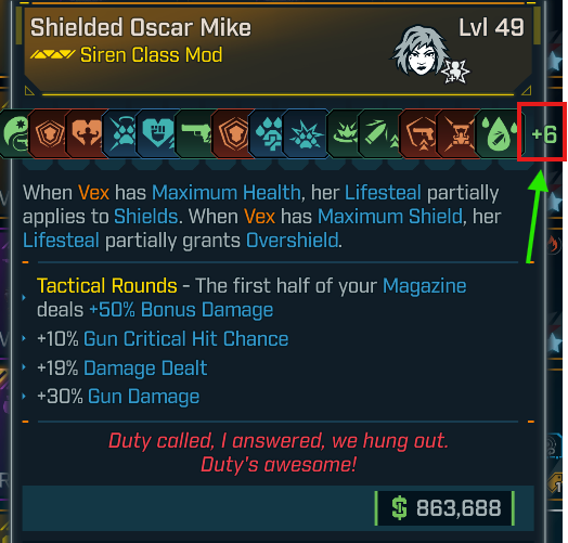 ◉ Shielded Oscar Mike — +29 roll — God-roll. Lifesteal → Shields/Overshield, +50% first-half-mag damage, big Gun/Crit/All-Damage rolls; absurd survivability + DPS. ◉ Shielded Oscar Mike — +6 roll — High roll. Lifesteal feeds Shields/Overshield + +50% early-mag damage; safe, nonstop damage. ◉ Shielded Oscar Mike — +5 roll — Solid roll with the same core buffs: Overshield from lifesteal + +50% early-mag damage; reliable all-rounder. ◉ Shielded Oscar Mike (Sniper “Blood Shot”) — +11 roll — Sniper kills/crit can trigger Blood Shot bursts, plus +50% early-mag damage and strong gun/crit stats; perfect for Finnity one-shots. ◉ Shielded Oscar Mike (Sniper “Blood Shot”) — +11 roll (variant) — Same sniper Blood Shot synergy and +50% early-mag damage; stacked for boss deletes.