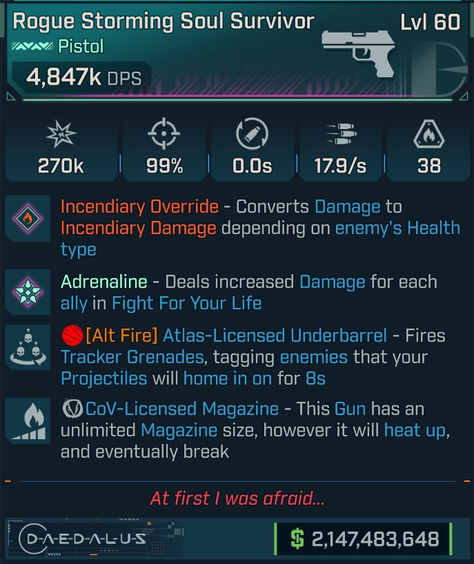 ⭐[PEARL] L60 SOUL SURVIVOR (FIRE) - 4,847K DPS - 99% ACC - 17.9/s F.R. - TRACKER GRENADES - COV MAG⭐