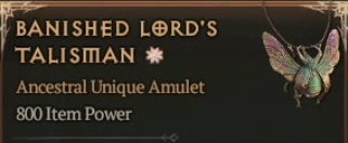 800 IP 1GA Banished Lord's Talisman - random stats - Season 12