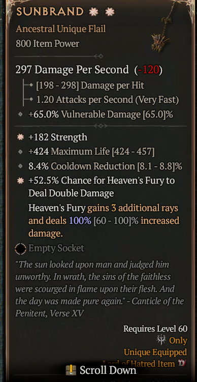 2GA Sunbrand (Max Aspect) GA Chance Heaven's Fury Deal Double Damage / GA Strength