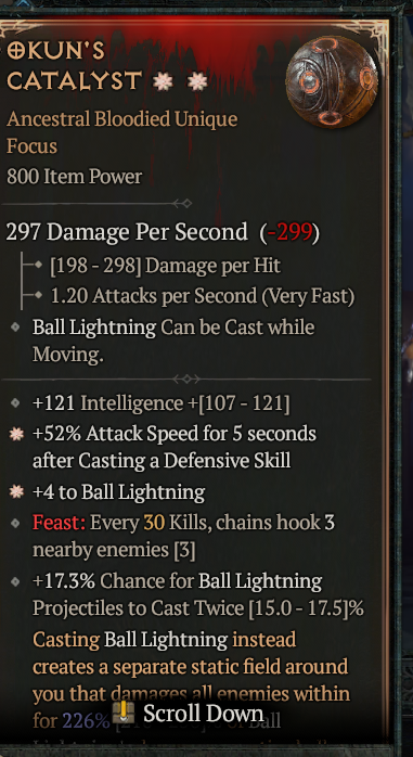 2GA Okun's Catalyst (226/250) GA +4 Ball Lightning / GA Attack Speed After Cast