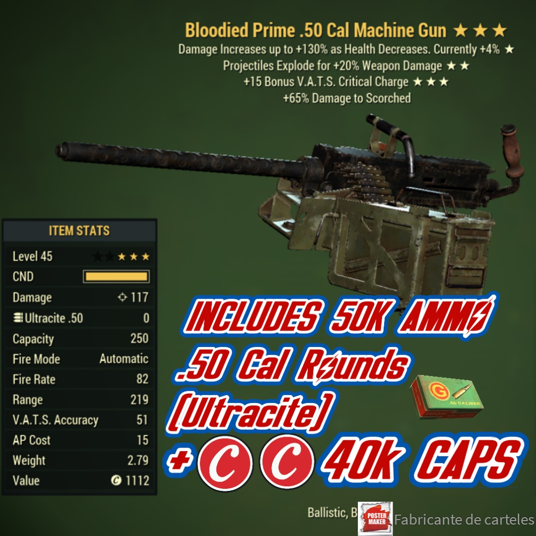 Bloodied Explosive .50 Cal Machine Gun ( BE15 - BE 15 ) + Ultracite Ammo + 40k Caps