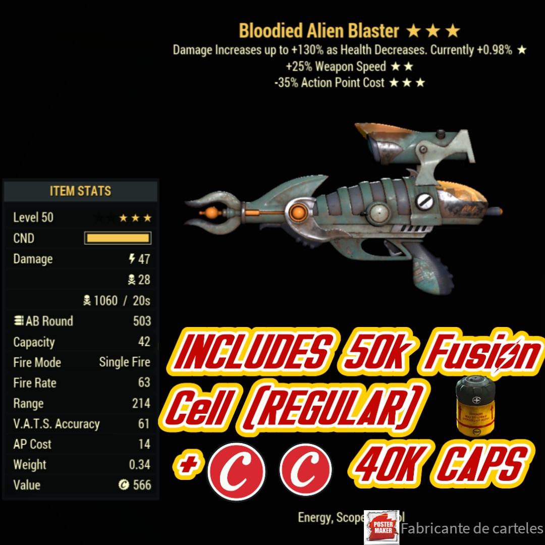 Bloodied Alien Blaster [ B2535 - B 25 35 ] + 40k Caps Ammo