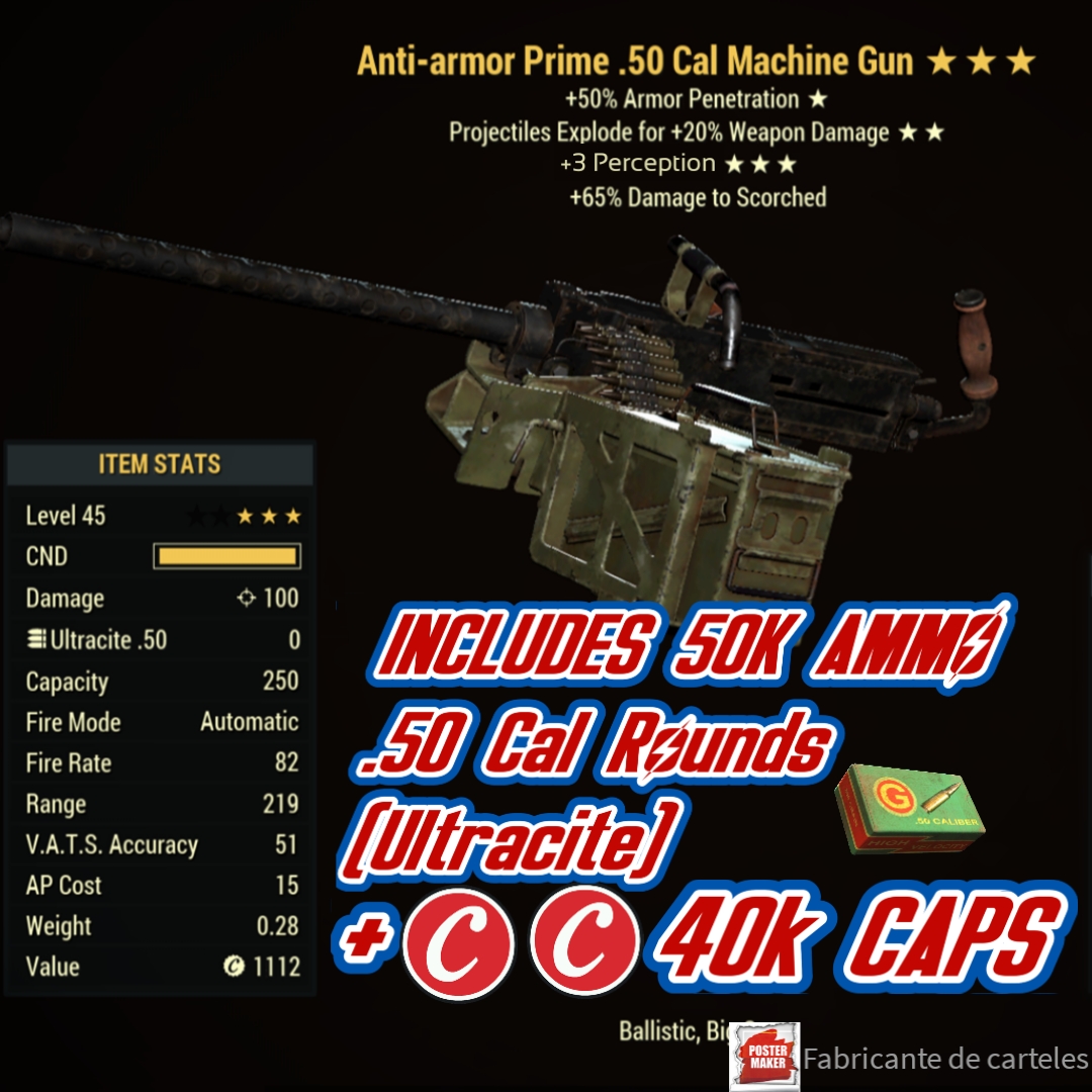 Anti Armor Explosive .50 Cal Machine Gun ( AAE3P - AAE 3P ) + 50k Ultracite Ammo + 50k Caps