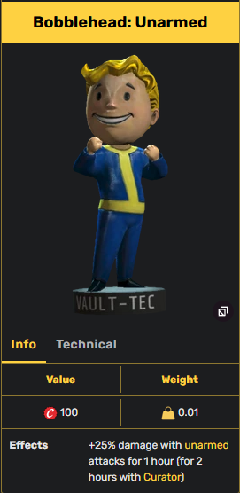 Bobblehead: Unarmed [+25% more damage with unarmed attacks.] x1000