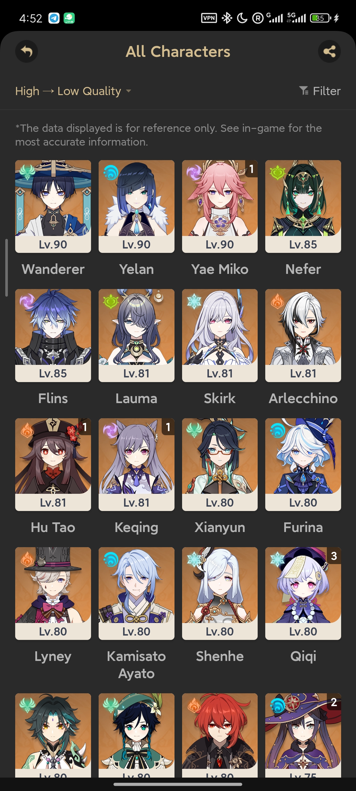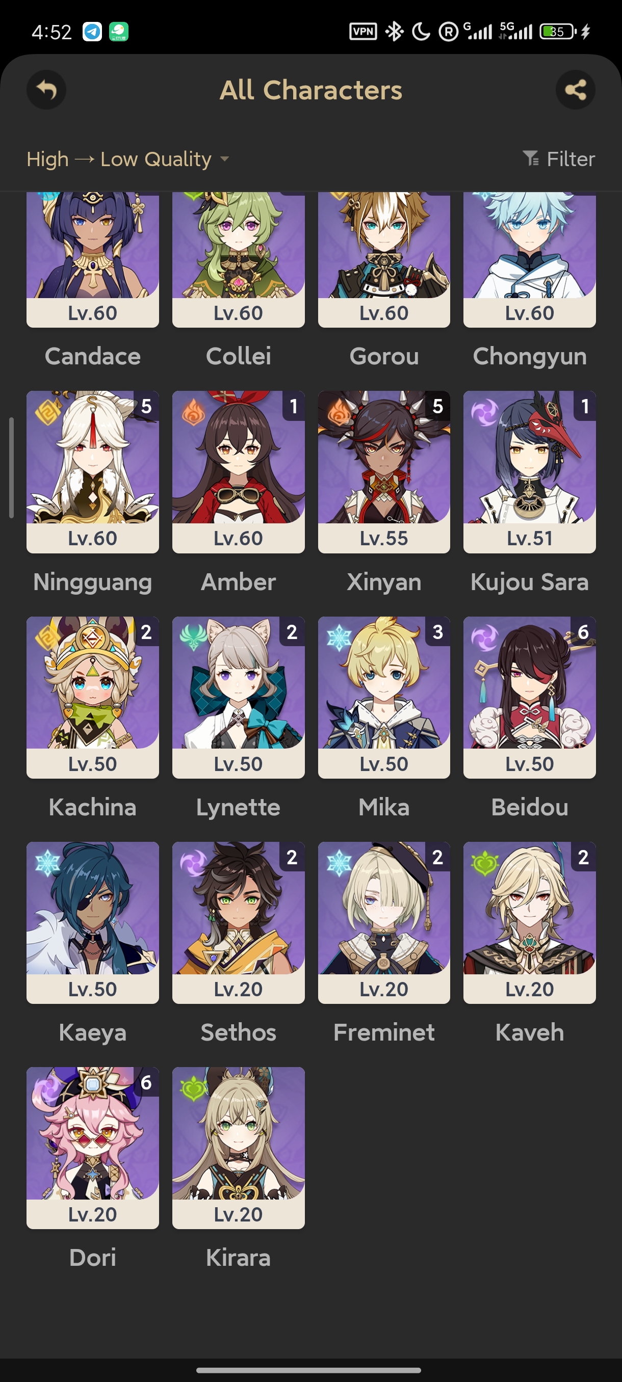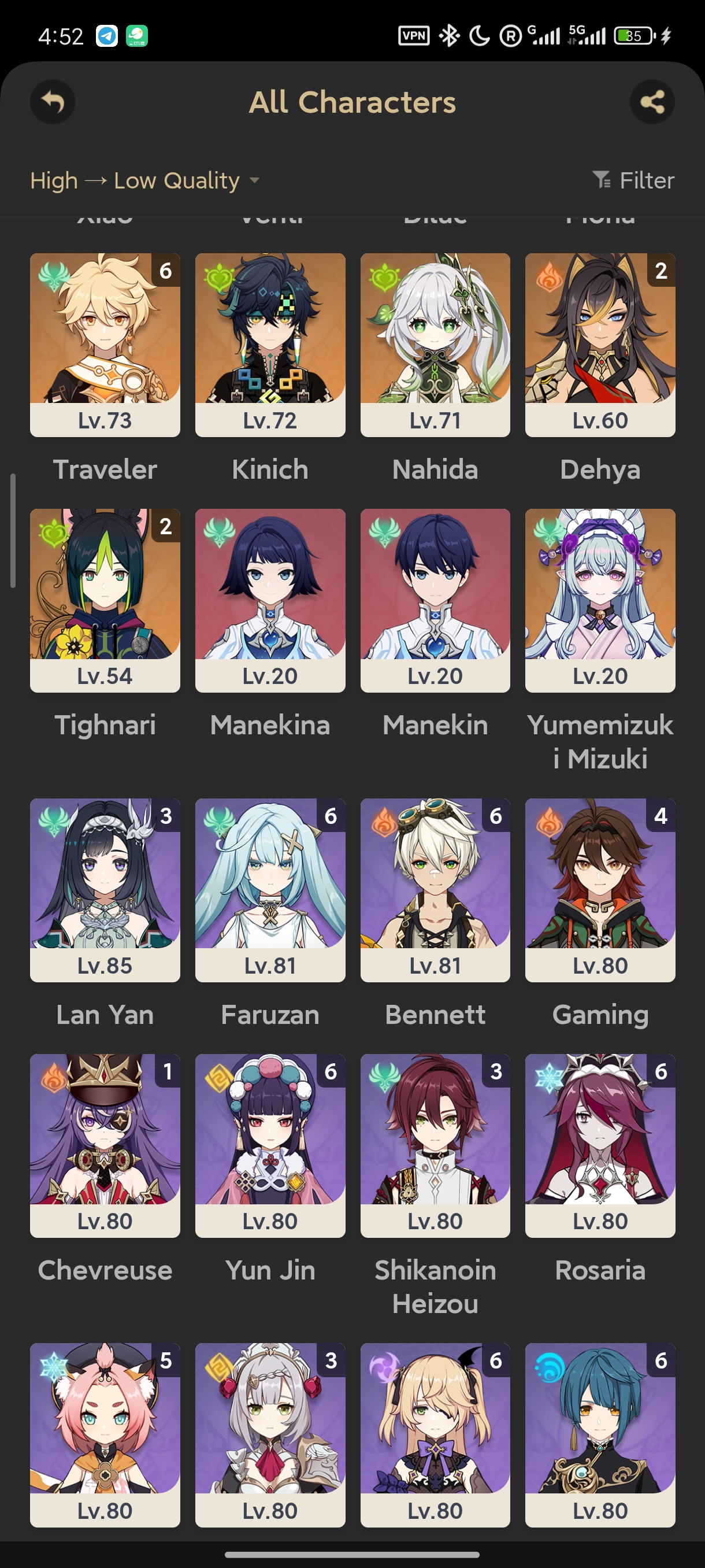 Кэцин C1, Цици C3, Дилюк, Мона C2, Дехья C2, Тигнари C2, Мизуки.