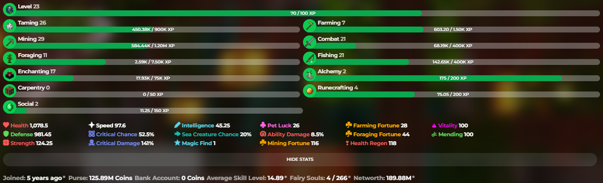 ✅❗️Solo-Coop | MVP+ | 23 SB lvl | 14.89 AVG | Cata 16 | 189.91M NW | Full accept | Hypixel SkyBlock❗✅