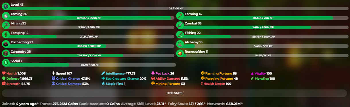 ✅❗️Solo-Coop | VIP+ | 43 SB lvl | 23.11 AVG | Cata 7 | 648.25M NW | Full accept | Hypixel SkyBlock❗️✅