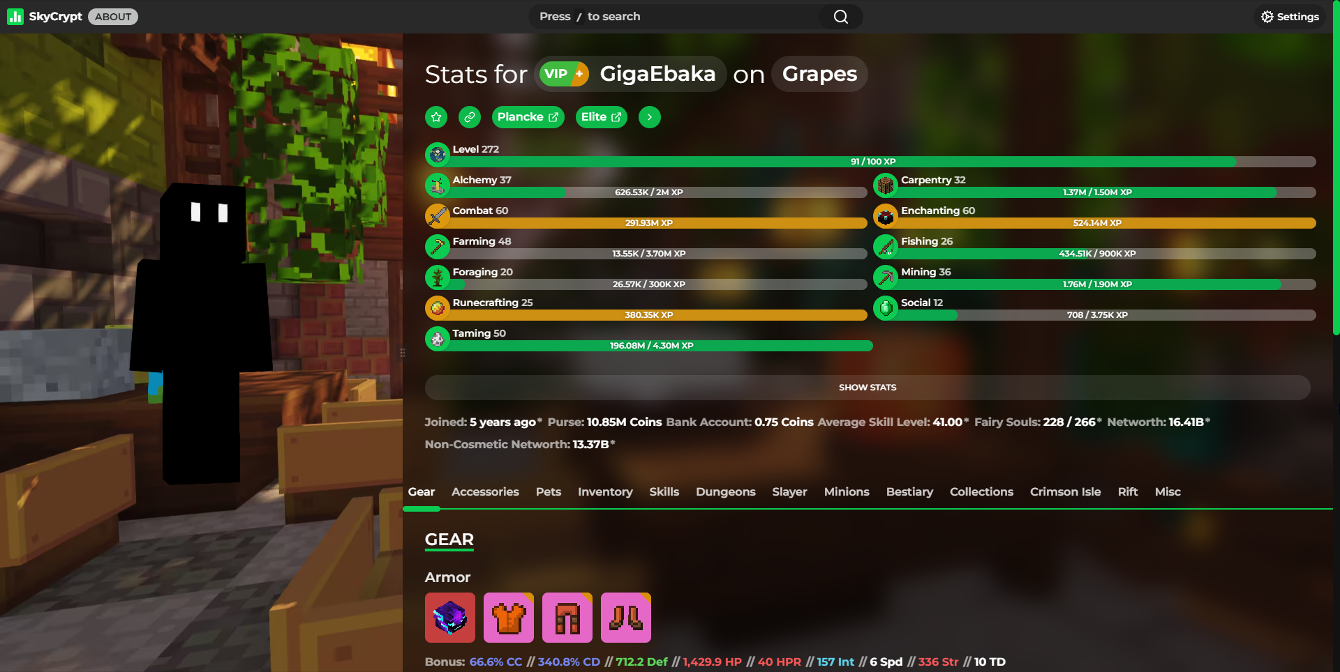 Detailed statistics - https://sky.shiiyu.moe/stats/GigaEbaka/Grapes#Gear ⚡